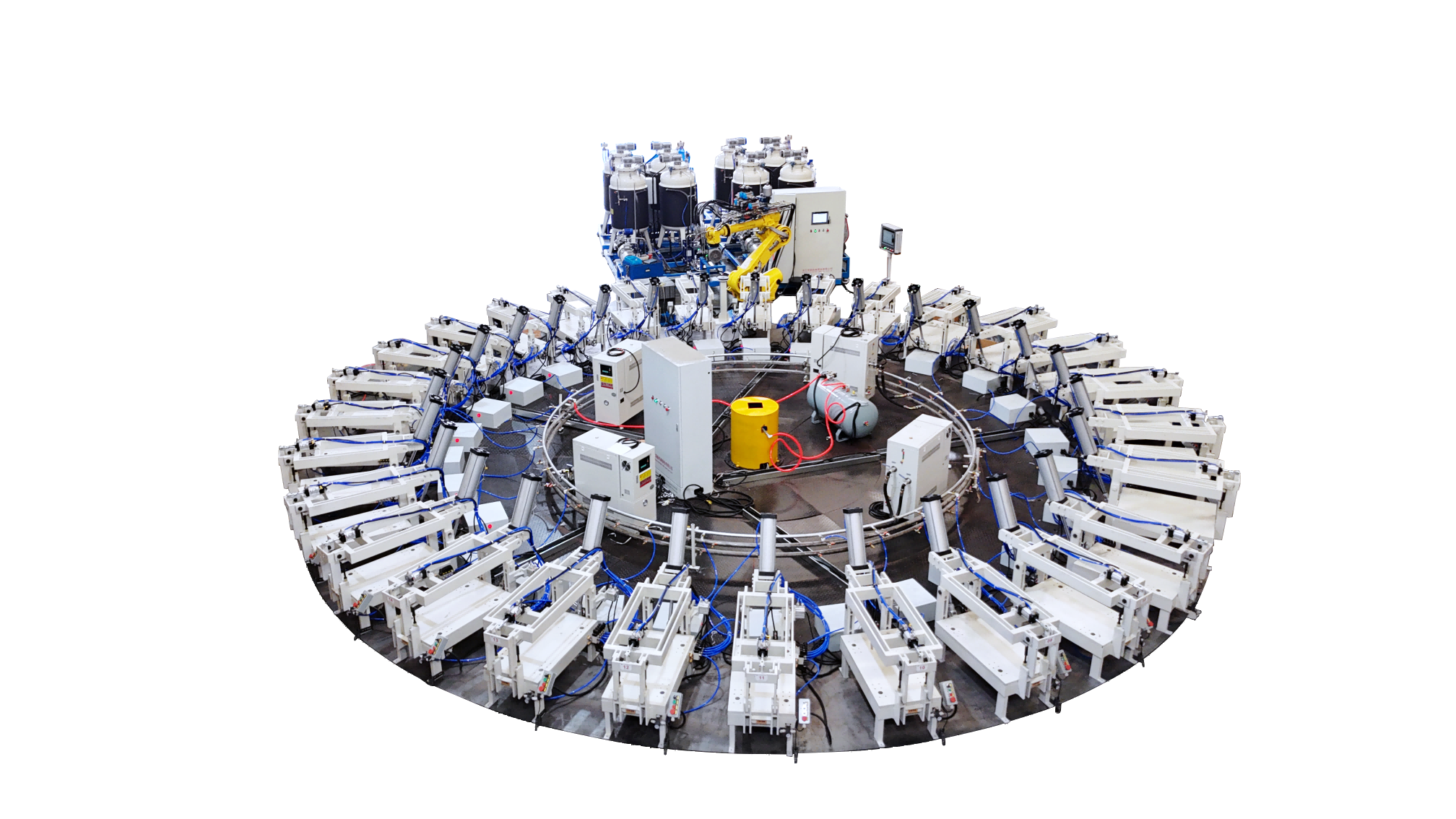 隨著社會發(fā)展,新能源汽車行業(yè)的崛起。目前汽車行業(yè)針對產品需求量大,為了滿足該行業(yè)的產品需求我們推出了高壓發(fā)泡機、低壓發(fā)泡機以及配套的自動化生產線,針對不同的產品需求,我們提供不同的解決方案。以下是部分自動化生產線解決方案。1. 全自動圓盤生產線是領新自研的全自…